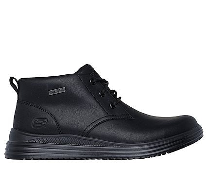 Experience unparalleled comfort and timeless style with the Skechers Proven - Conklin. This fashionable mid-calf lace-up boot combines classic design with innovative technology. The waterproof leather upper provides protection and durability, while the Skechers Air-Cooled Memory Foam insole with activated carbon neutralizes unpleasant odors. SKU: 204873-BBK