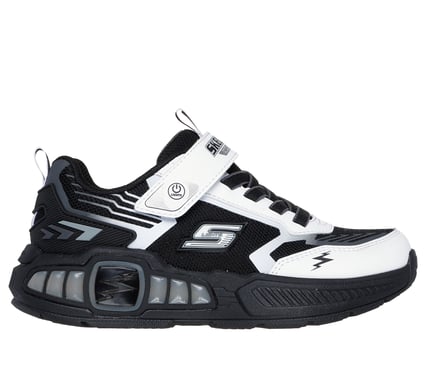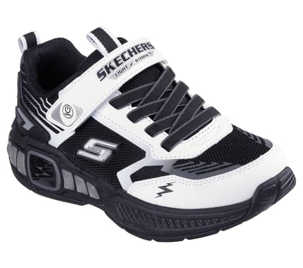 Step with a bolt of comfort and sporty style in Skechers S-Lights®: Light Storm 3.0. This thematic sneaker features a mesh and synthetic upper with a multicolored light-up tech piece midsole, stretch laces, and adjustable instep strap.