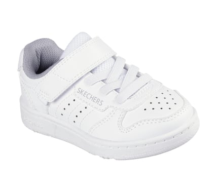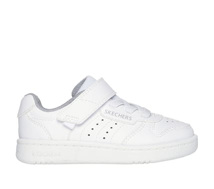 Alley-oop in comfortable court-style wearing Skechers Street™ Quick Street. This machine-washable low-top features a smooth duraleather upper with stretch laces, Skechers adaptive closure, and a cushioned comfort insole.