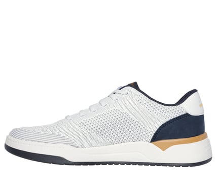 Great comfort pairs well with laid-back style in the Skechers Relaxed Fit®: Corliss - Dorset. This casual design features an engineered knit and synthetic upper with stretch laces, a charcoal infused Skechers Air-Cooled Memory Foam® comfort insole, and Skechers Goga Mat Arch™ cushioning for added support.