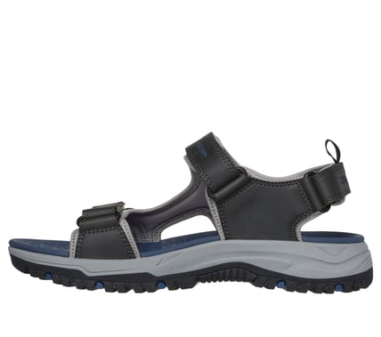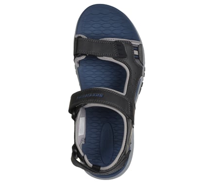 Travel all day in long-lasting comfort with Skechers Relaxed Fit®: Prewitt - Rigdon. This roomy vegan sandal features a synthetic upper with 3 adjustable strap closures and a cushioned Luxe Foam® footbed.