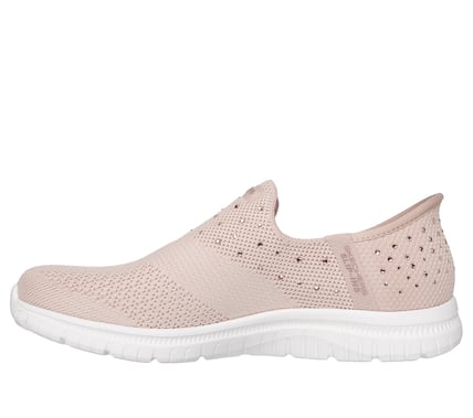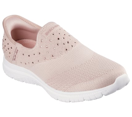Step into effortless style and comfort with Skechers Hands Free Slip-ins®: Virtue - Starlight. Designed with our exclusive Heel Pillow™, this laceless style features an engineered knit upper with rhinestone embellishments and a cushioned Skechers Air-Cooled Memory Foam® insole.