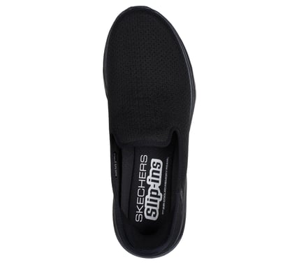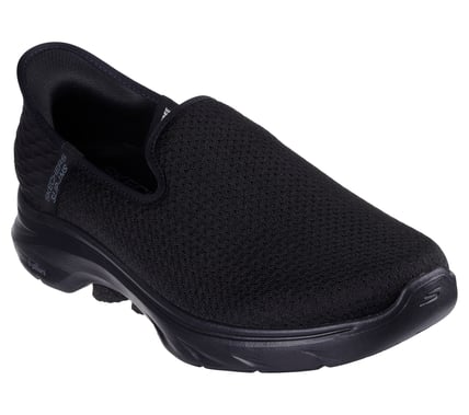 Step-in to convenient walking comfort and cushioning wearing Skechers Hands Free Slip-ins®: GO WALK 7™ - Daley 2. Designed with our exclusive Heel Pillow™, this vegan TOUCHLESS FIT® slip-on features a breathable monomesh upper with a Skechers Air-Cooled Memory Foam® insole, lightweight ULTRA GO® cushioning and Hyper Pillar Technology™.