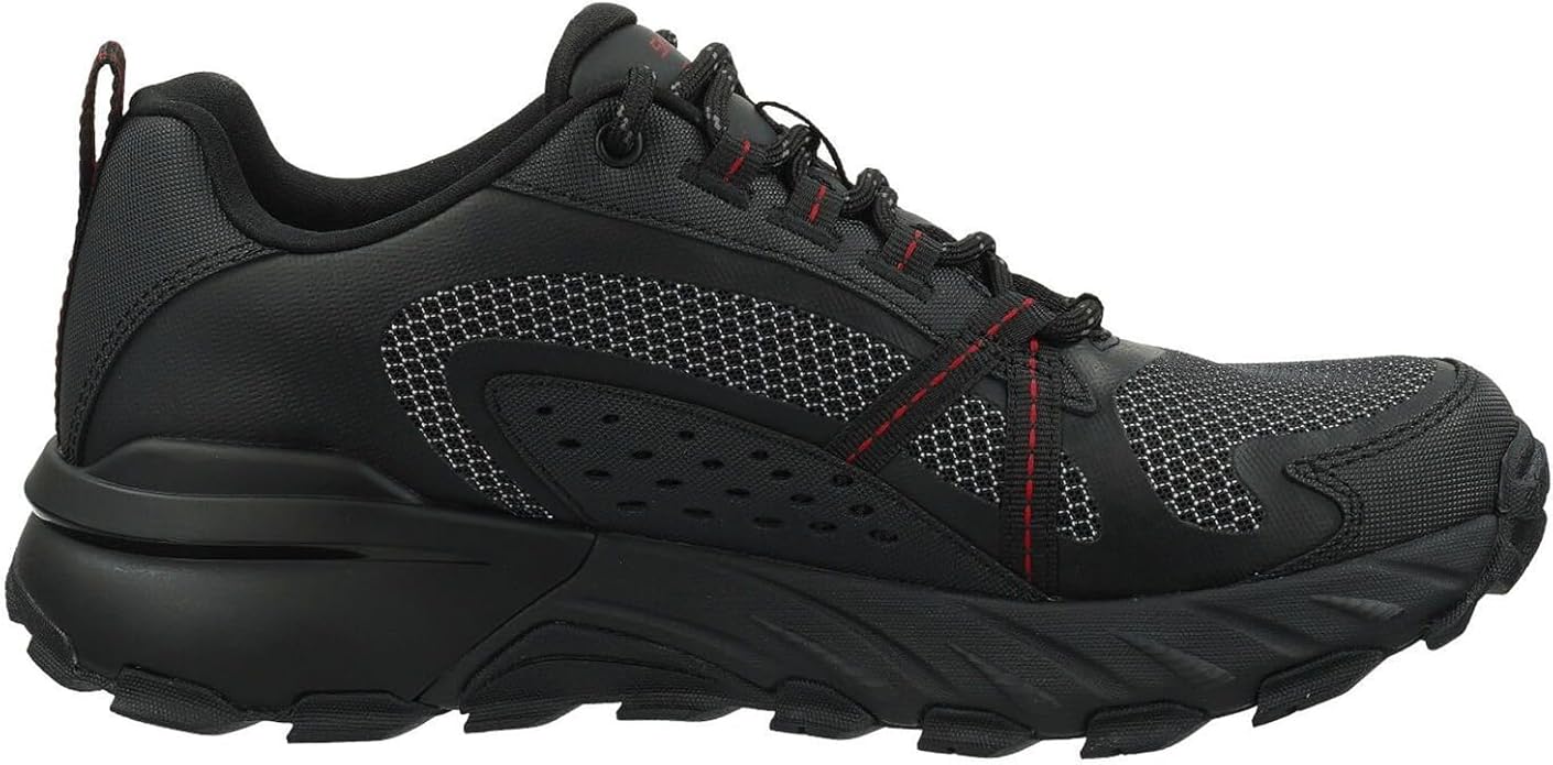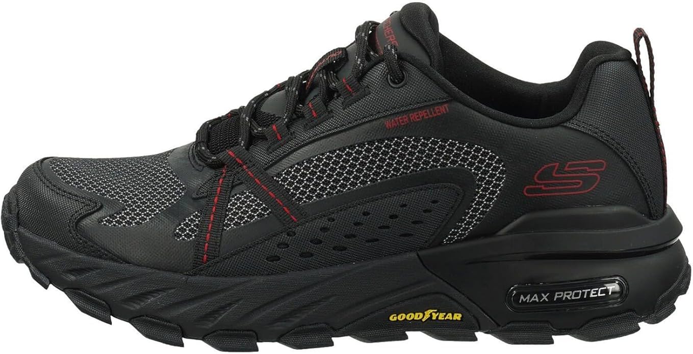 Stride through the day with durable comfort in Skechers Max Protect. This lace-up features a water-resistant leather and mesh upper, Skechers Air-Cooled Memory Foam® insole and a Goodyear® performance outsole. SKU: 237303-BKRD