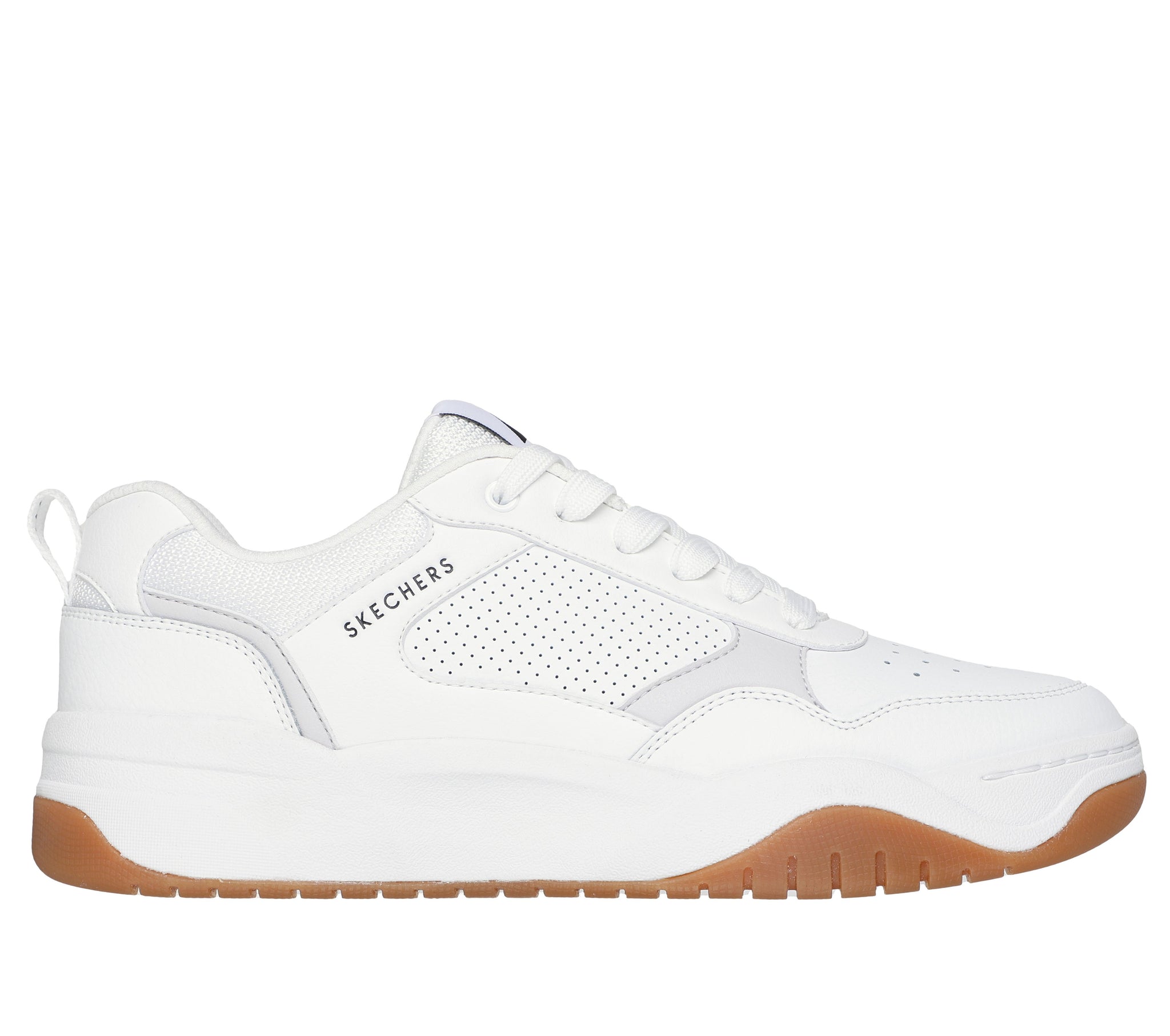 "Stay cool in premium style with the Skechers Street™ Odyssey - On the Way. This low-top lace-up shoe features a color-blocked genuine leather upper with a mesh collar, a court-style midsole with a rubber outsole, and our Skechers Air-Cooled Memory Foam® cushioned insole. "