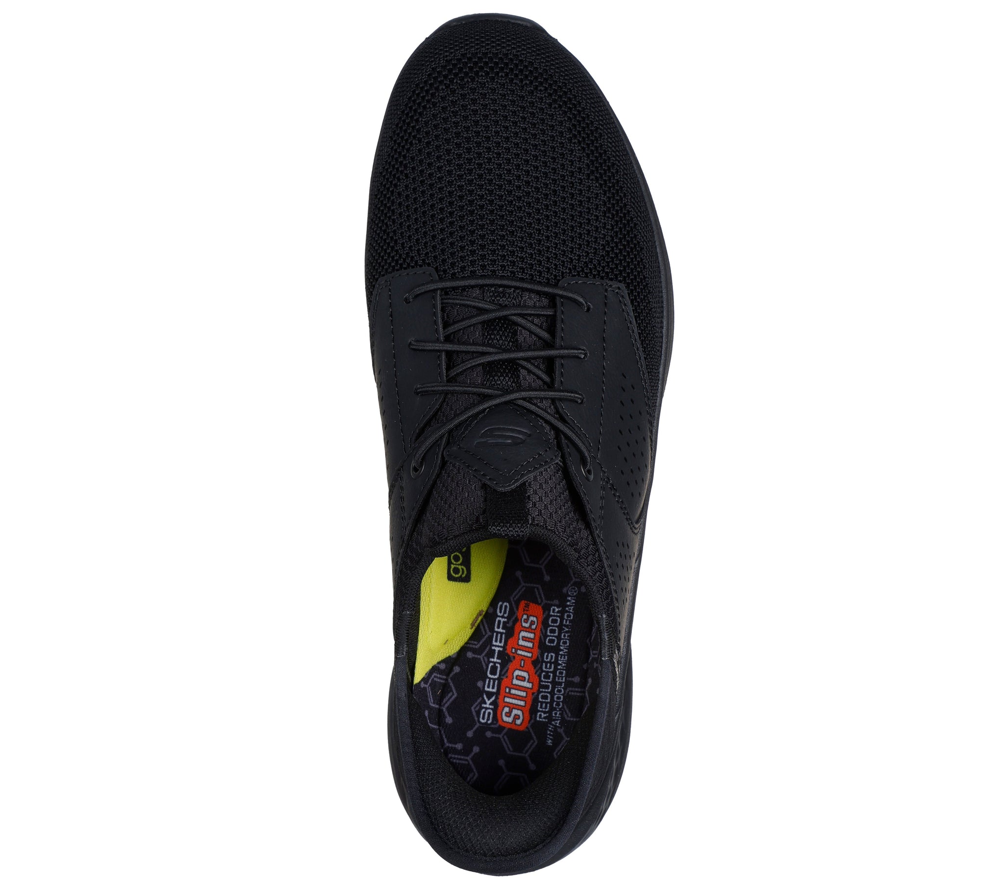 Step into convenient walking comfort with Skechers Slip-ins® Relaxed Fit®: Slade - Caster. Designed with our Heel Pillow®, this stretch-laced style features a mesh and synthetic upper with a charcoal-infused Skechers Air-Cooled Memory Foam® insole and Skechers Goga Mat Arch™ support.