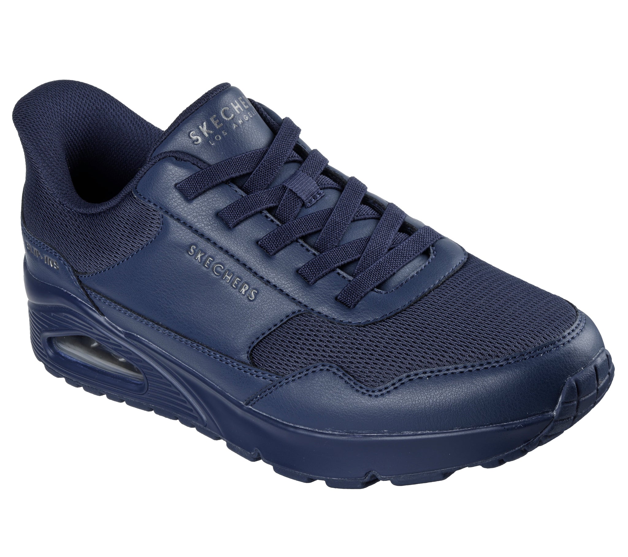 An iconic Skechers favorite is reinvented with effortless comfort in the Skechers Street Hands Free Slip-ins: Uno - Banksia. Designed with our exclusive Heel Pillow, this No-Tie Fit fashion sneaker features a duraleather upper with elastic laces, a cushioned Skechers Air-Cooled Memory Foam insole and a visible Skech-Air airbag midsole.