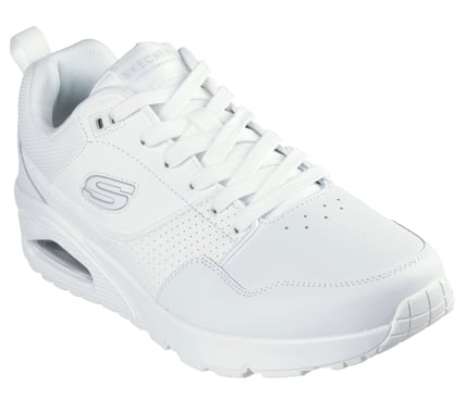 "Retro jogger style meets comfort in the Skechers Street™ One - Retro One. This retro-style lace-up jogger features a leather, suede and duraleather overlay upper with a Skechers Air-Cooled Memory Foam® insole and a translucent Skech-Air® airbag midsole. "