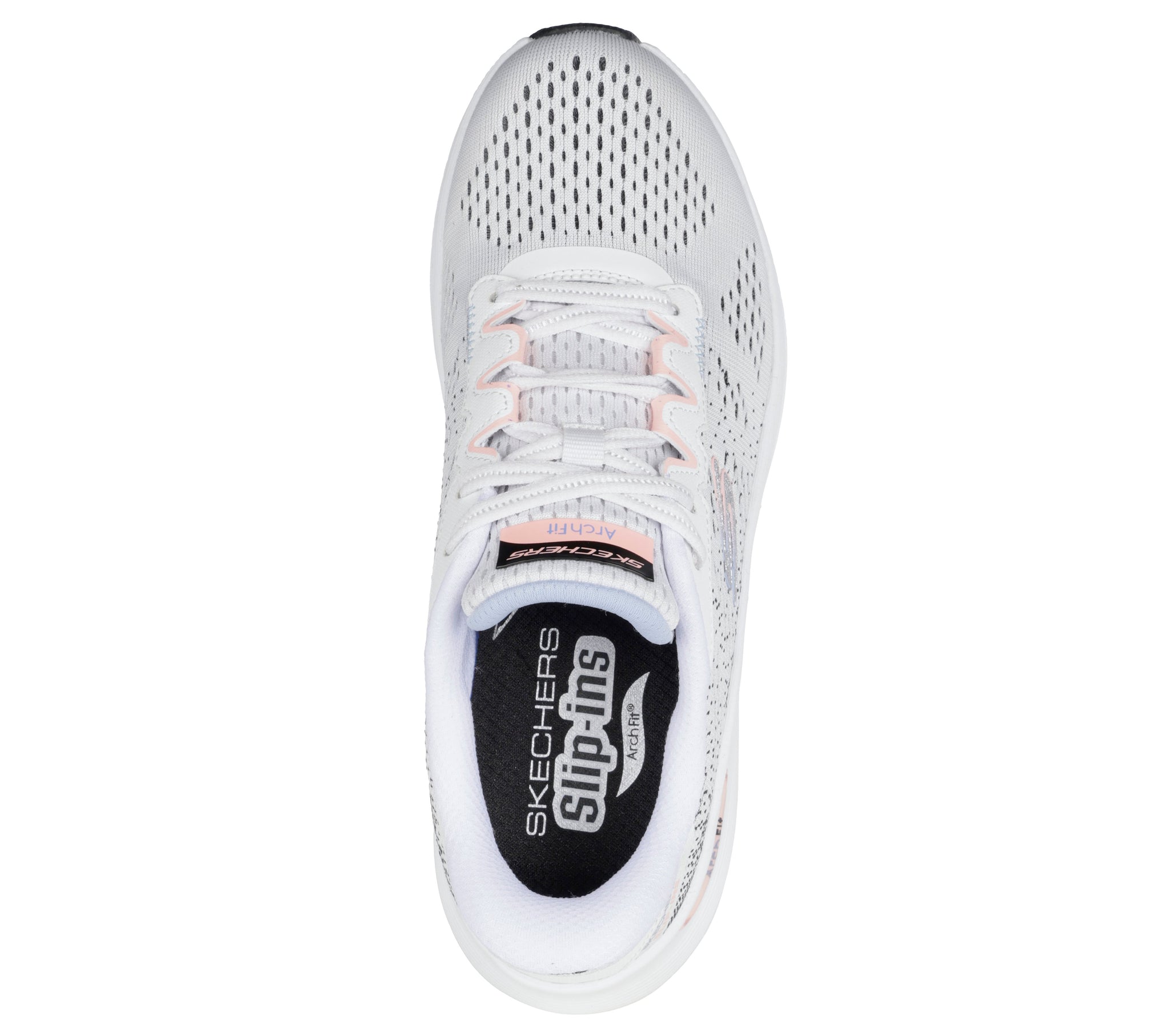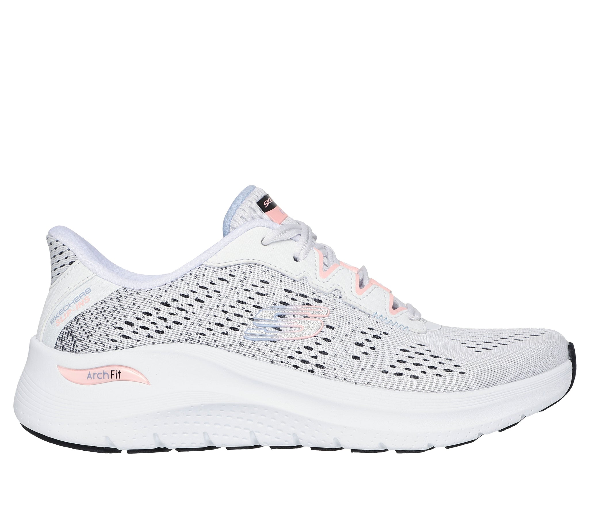 Step up your routine with easygoing comfort wearing Skechers Hands Free Slip-ins®: Arch Fit® 2.0 - Fresh Space. Designed with our Heel Pillow®, this vegan slip-on features an engineered mesh and duraleather upper, adjustable laces, and an air-cooled Arch Fit® insole.