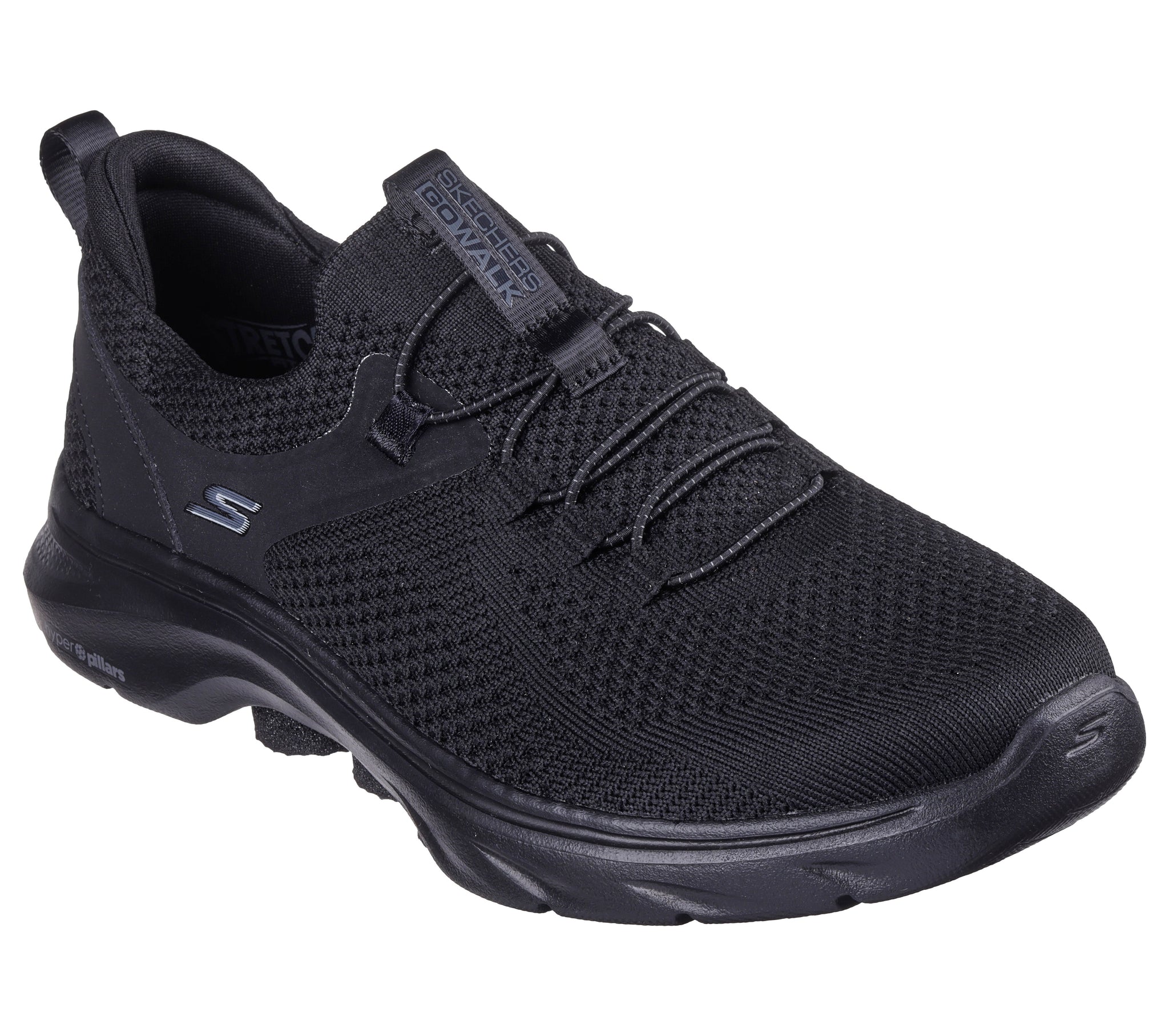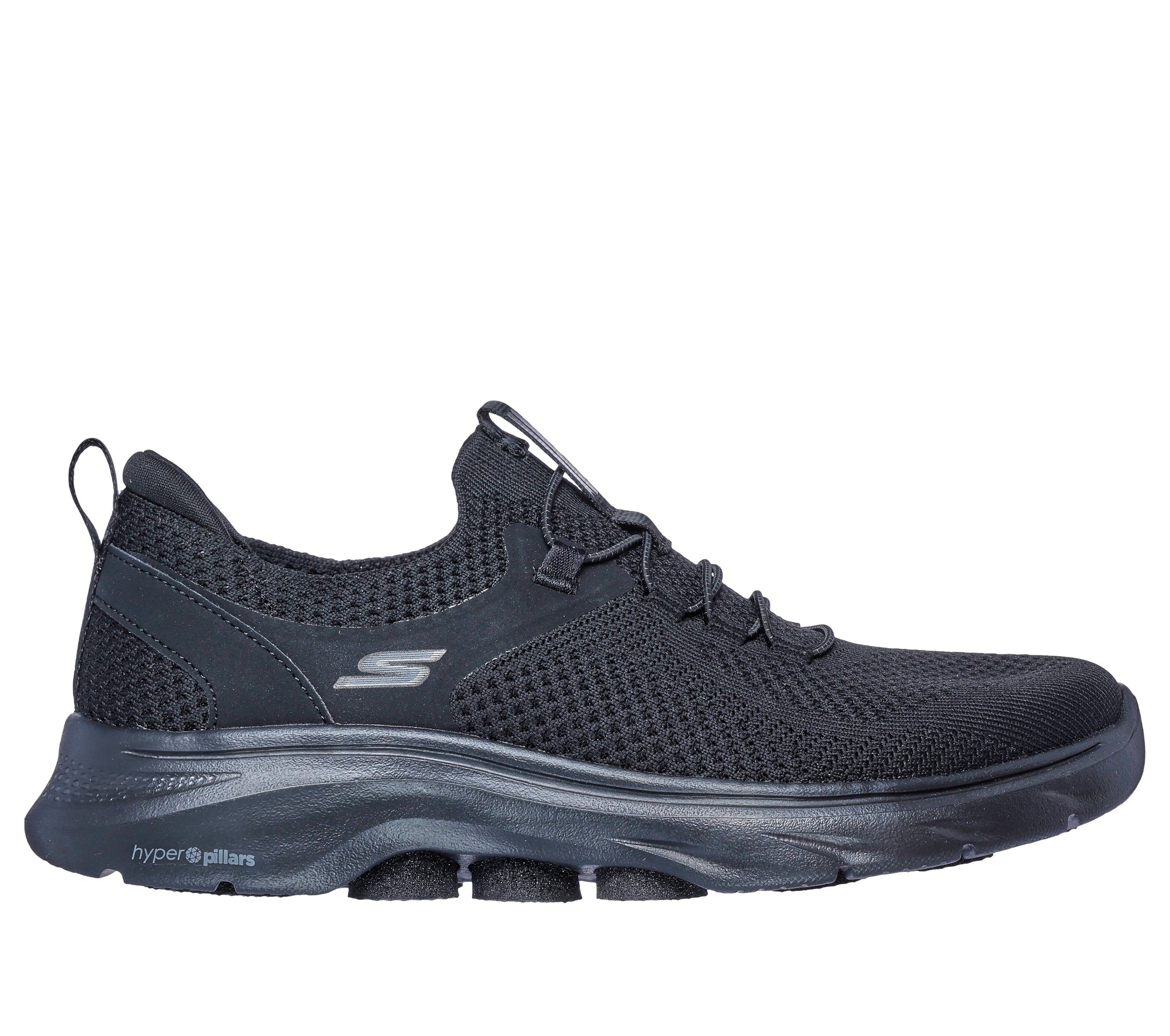 Walk in easy-wearing comfort with Skechers GO WALK 7™ - Abie. This sporty vegan design features a mesh and synthetic upper with stretch laces, a Skechers Air-Cooled Goga Mat™ insole, lightweight ULTRA GO® cushioning, and high-rebound Hyper Pillar Technology™ for added support.