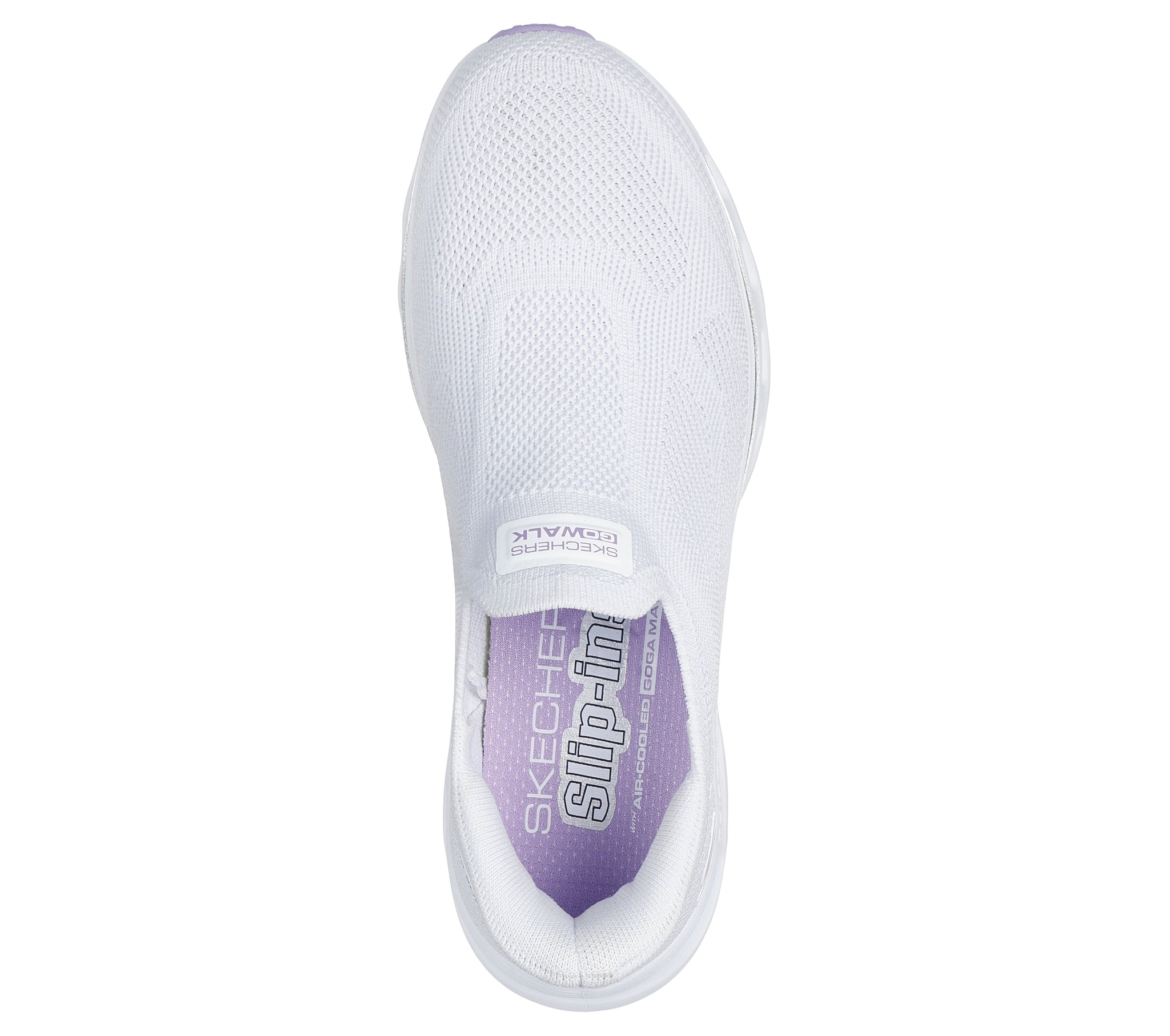 Step-in to convenient walking comfort and cushioning wearing Skechers Hands Free Slip-ins: Go Walk Glide-Step 2. - Annette. Designed with our exclusive Heel Pillow, this sporty style features a soft engineered knit upper, Skechers Air-Cooled Goga Mat insole, and a lightweight ULTRA GO cushioned Glide-Step 2. midsole.