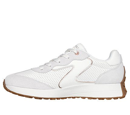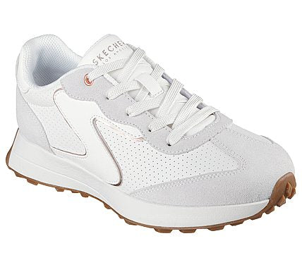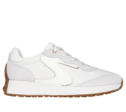 Step up your style with a fresh kick in Skechers Street™ Gusto. This lace-up fashion sneaker features a perforated duraleather upper with suede overlays, rose gold trim, and a cushioned Skechers Air-Cooled Memory Foam® insole. SKU: 177151-WHT