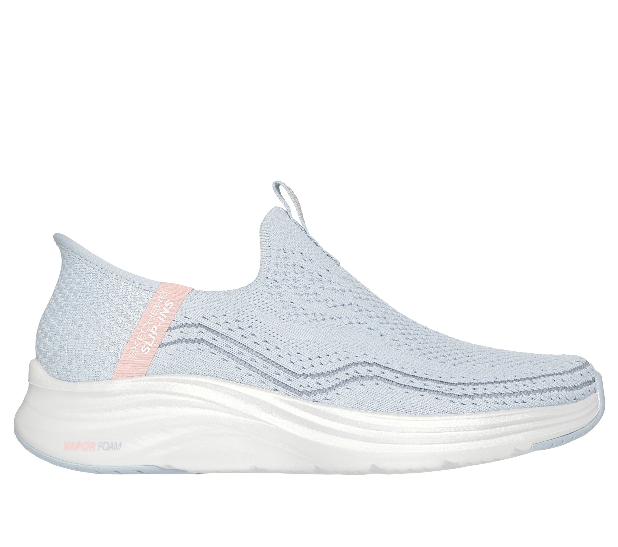 "Enjoy absolute comfort and sleek, ultralight style with the Skechers Hands Free Slip-ins®: Vapor Foam® – Luxe Breeze. Designed with our exclusive Heel Pillow™ cushioning, this slip-on features a stretch mesh upper, a Skechers Air-Cooled Memory Foam® cushioning insole, and an ultralight Vapor Foam® midsole. "