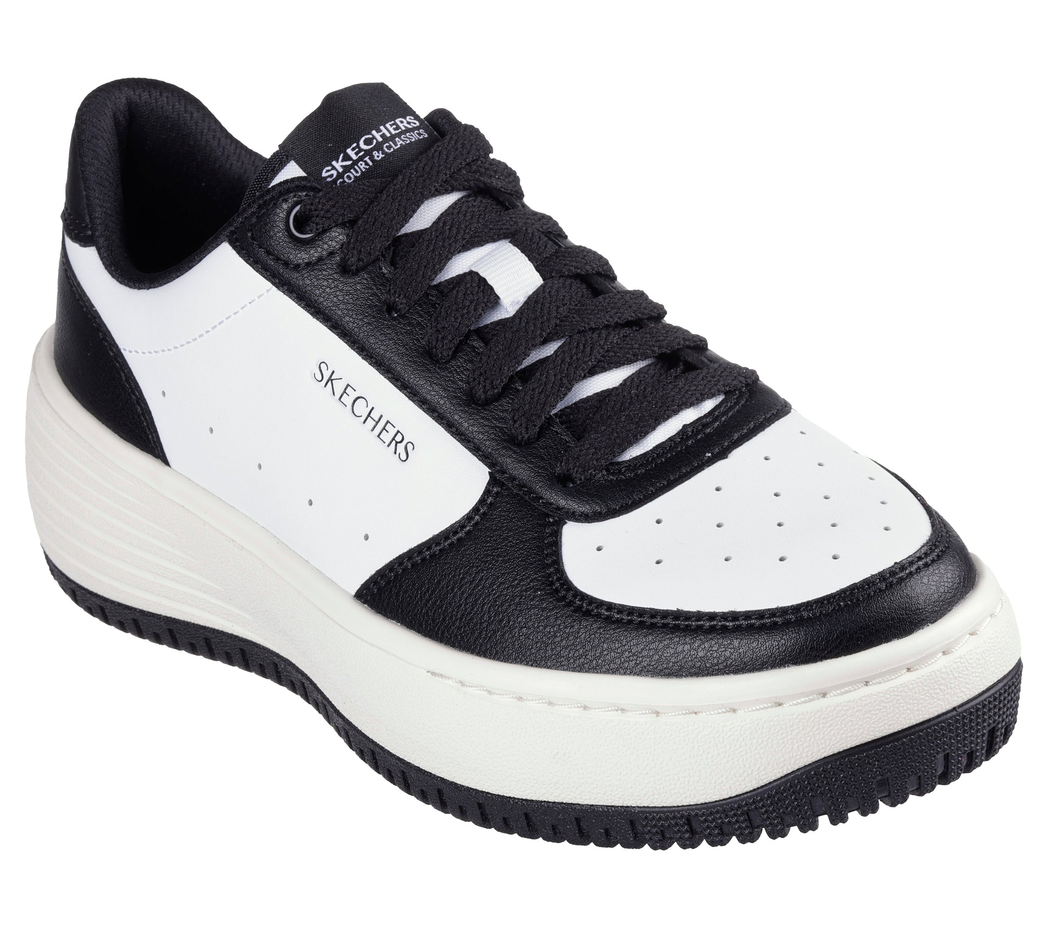 Updated your look with a wardrobe classic in Skechers Grand 92 - Be Lifted. Featuring a clean court silhouette, lace-up duraleather upper, a cushioned Skechers Air-Cooled Memory Foam® insole, and a bold platform midsole.