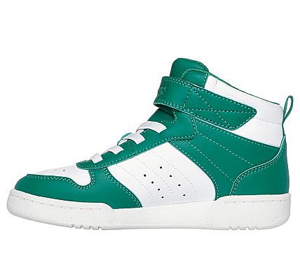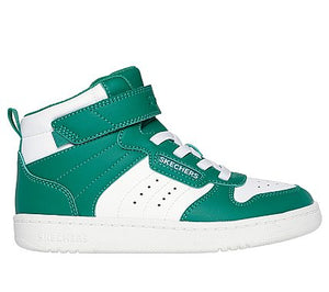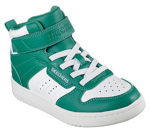 Have them looking cool and sporty wearing Skechers Street™ Quick Street - Rapid Avenue. This high-top court-style sneaker features a duraleather upper with perforated details, stretch laces plus adjustable instep strap, and a cushioned comfort insole. SKU: 405636L-GRW