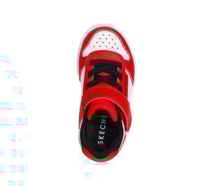 Alley-oop in comfortable court-style wearing Skechers Street™ Quick Street. This machine-washable low-top features a smooth duraleather upper with stretch laces, Skechers adaptive closure, and a cushioned comfort insole.
