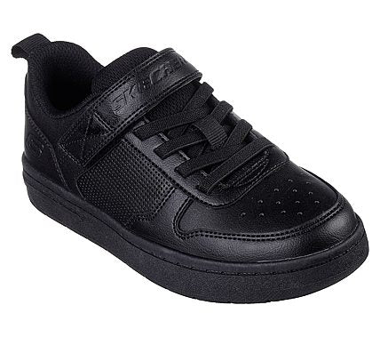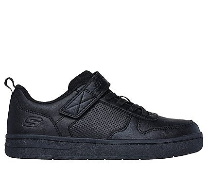 Get a kick of classic style and comfort with Skechers Street™ Smooth Street. This machine washable court style sneaker features a smooth and textured synthetic upper with stretch laces, adjustable instep strap, and a cushioned insole. SKU: 405632L-BBK