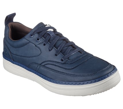 Bring classic style and comfort everywhere in Skechers Hyland - Lars. This laced slip-on features a canvas upper with a Classic Fit™, an odor neutralizing charcoal infused Skechers Air-Cooled Memory Foam® comfort insole, and Skechers Goga Mat Arch™ cushioning for added support.