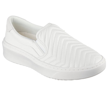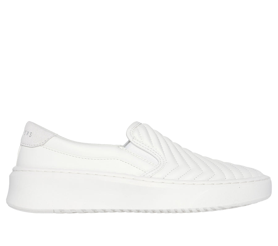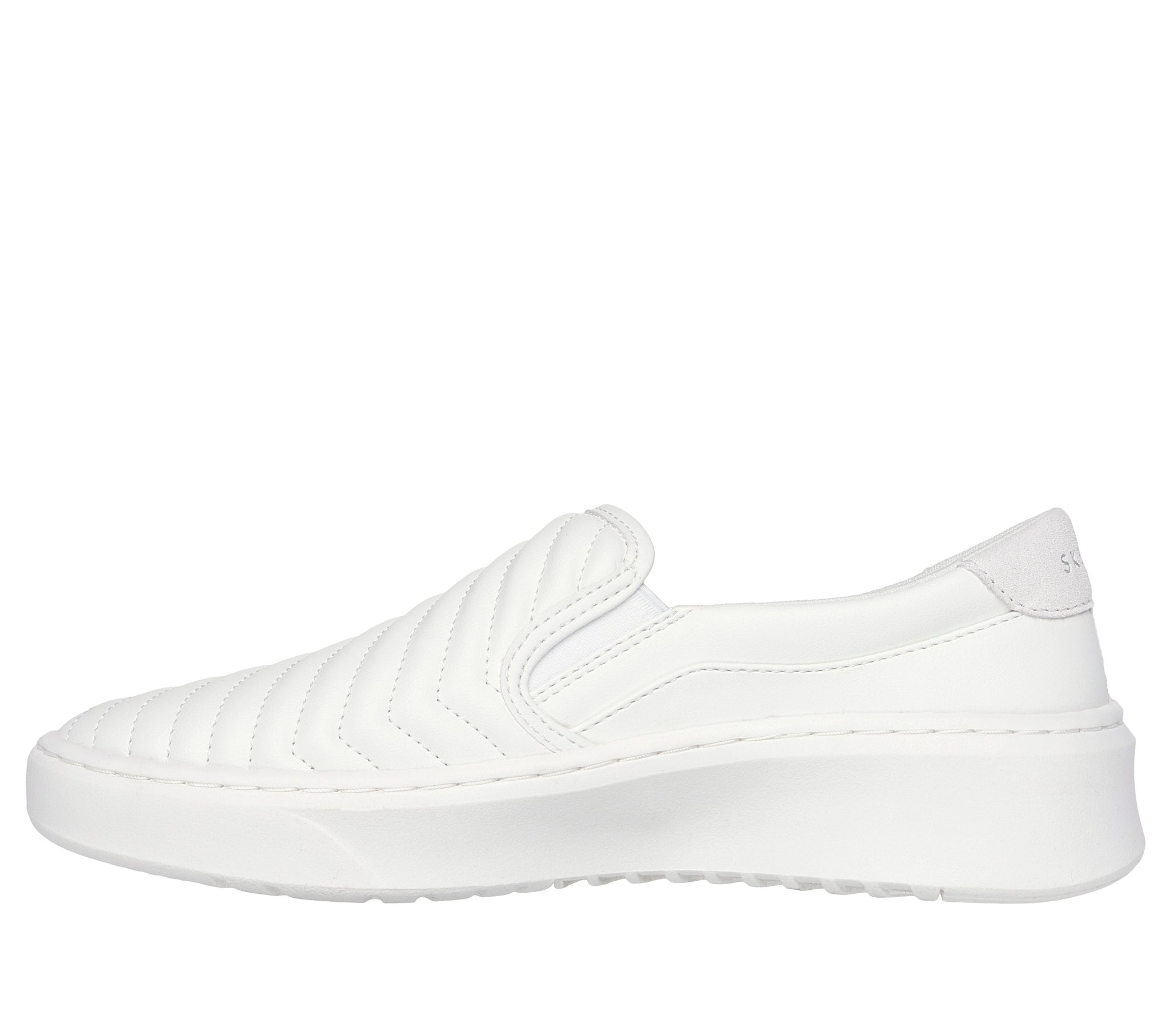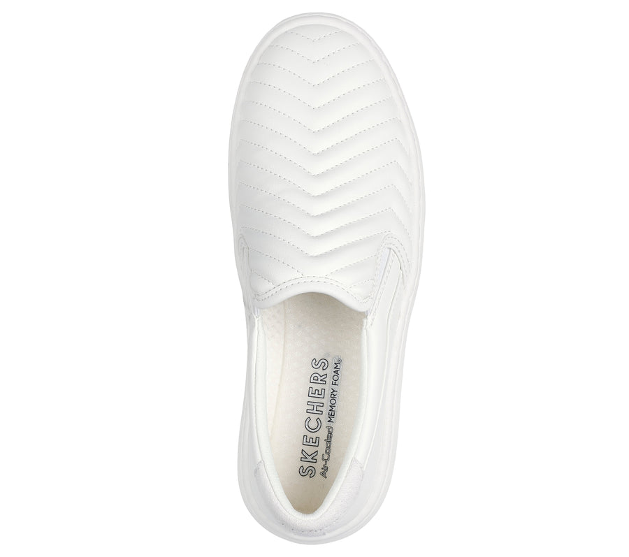 Keep casually cool in a versatile look that goes with everything wearing Skechers Street™ Court Break . This laceless vegan style features a highly breathable engineered rib knit upper with faux leather heel cushion detail, a court-style midsole, and a Skechers Air-Cooled Memory Foam® comfort insole.