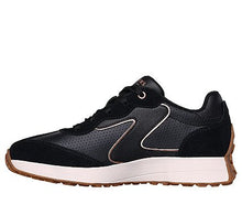 Step up your style with a fresh kick in Skechers Street™ Gusto. This lace-up fashion sneaker features a perforated duraleather upper with suede overlays, rose gold trim, and a cushioned Skechers Air-Cooled Memory Foam® insole. SKU: 177151-BLK