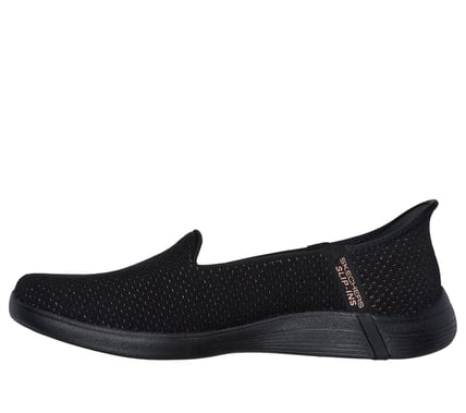 Step into stylish comfort with Skechers Hands Free Slip-ins®: On-the-GO® Swift - Luminary. Featuring a laceless sparkle knit upper with our exclusive Heel Pillow™, Skechers Air-Cooled Memory Foam® insole, and a lightweight ULTRA GO® cushioned midsole.