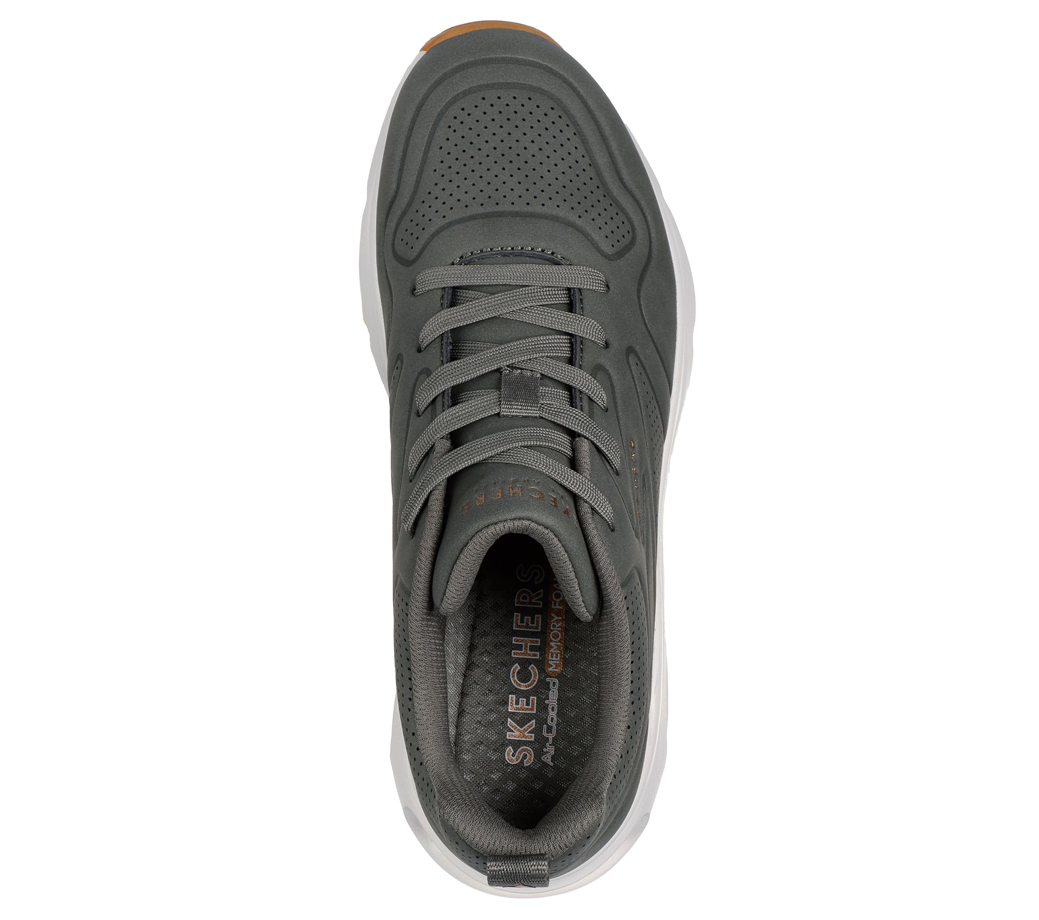 Stand out with a cool kick from Skechers Street™ Tres-Air Uno - Ah - Mazing. This sporty fashion lace-up features a synthetic durasuede embossed upper with a Skech-Air® triple window visible airbag midsole and a Skechers Air-Cooled Memory Foam® insole.